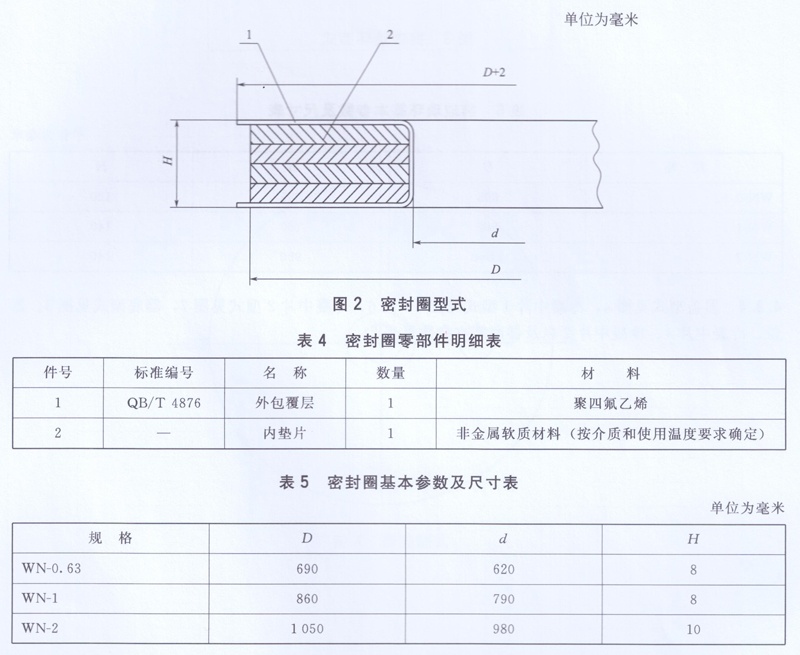 4.3.2 密封圈用聚四氟乙烯應符合QB/T 4876的規(guī)定,厚度均勻,允許偏差為±0.1mm ,密封平面不允許有皺紋、凸起及徑向溝槽。