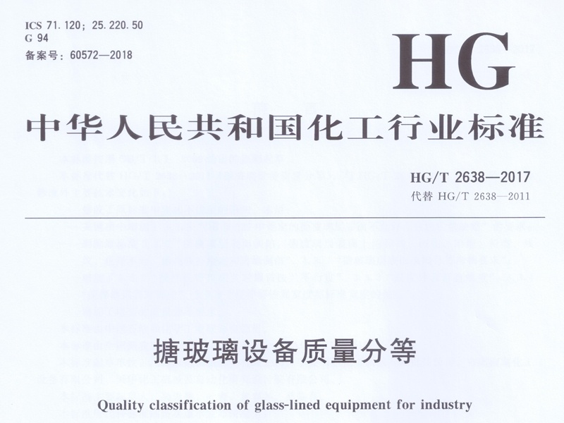 本標準代替HG/T 2638 2011 《搪玻璃設(shè)備質(zhì)量分等》。與HG/T 2638 2011相比,除編輯性修改外主要技術(shù)變化如下: