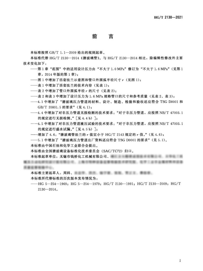 中華人民共和國化工行業(yè)標準HG/T 2130-2021搪玻璃管 點擊下載搪玻璃管行業(yè)標準