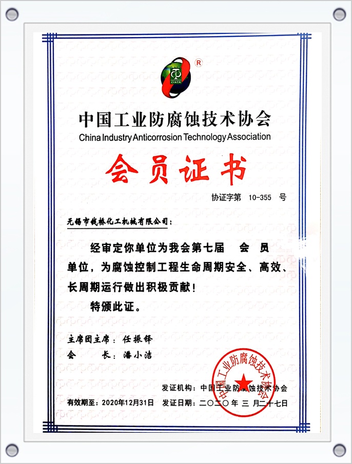 中國工業(yè)防腐蝕技術(shù)協(xié)會(huì)會(huì)員證書