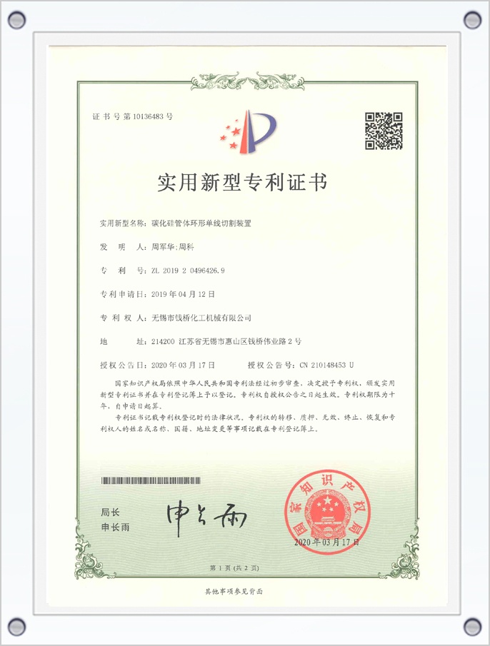碳化硅管體環(huán)形單線切割裝置專(zhuān)利證書(shū)