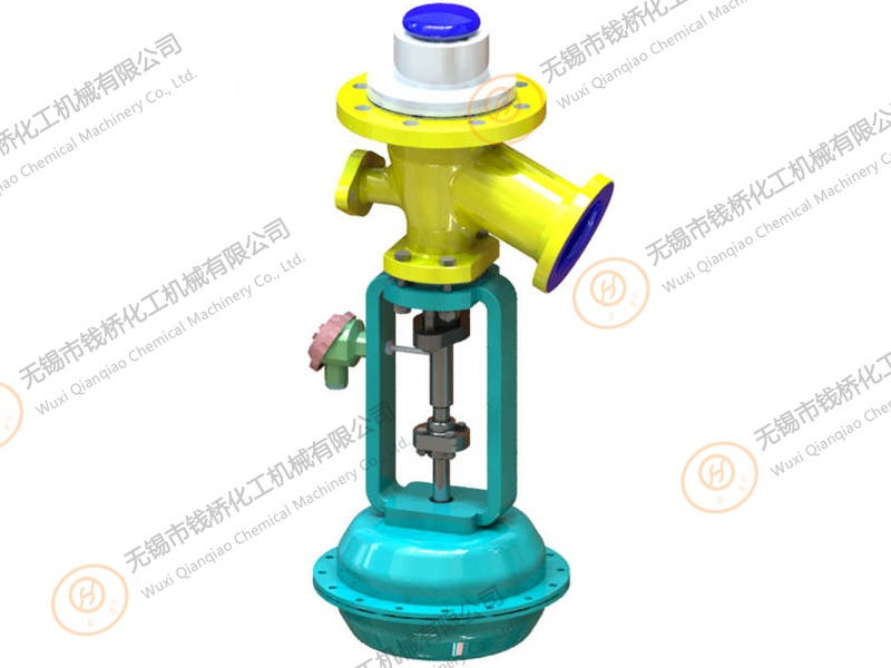 Bottom outlet valve (65°) gap free with pneumatic actuator.搪玻璃上展式自動(dòng)放料閥 *內(nèi)置測(cè)溫氣動(dòng)放料閥Can not be used for liquids containing fluoride ions (such as hydrofluoric acid, etc.), nor can it be used for strong alkalis and concentrated phosphoric acid with a temperat